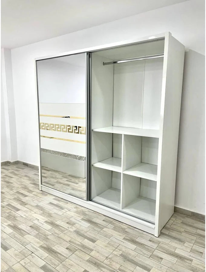 Dressing dormitor modern, ideal pentru organizarea eficientă a garderobei. Oferă spațiu generos cu rafturi și compartimente versatile, perfect pentru a păstra hainele și accesoriile în ordine. Design elegant se integrează ușor în orice decor de dormitor. Soluție practică și funcțională pentru a maximiza spațiul disponibil și a crea un mediu organizat și plăcut.